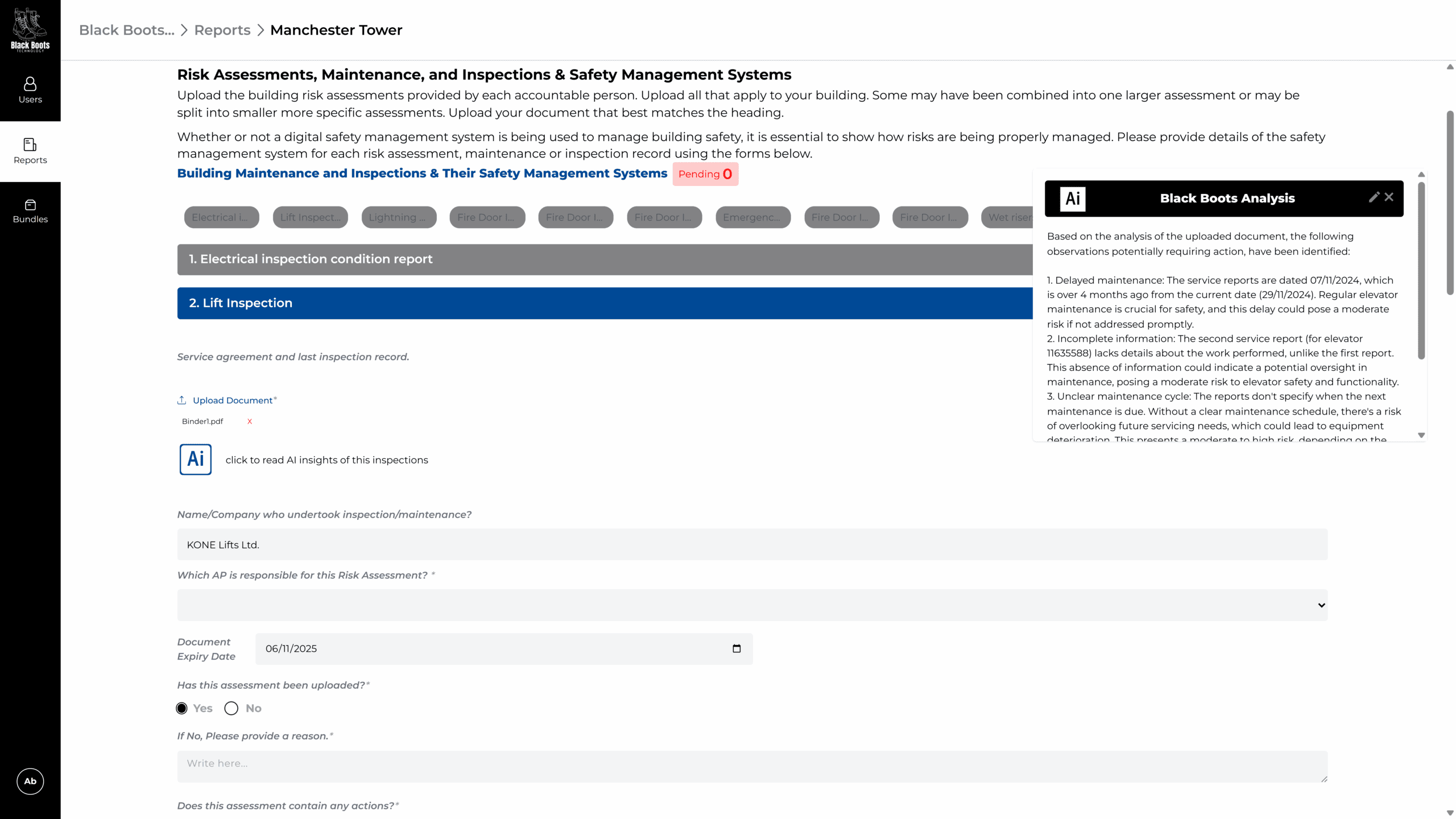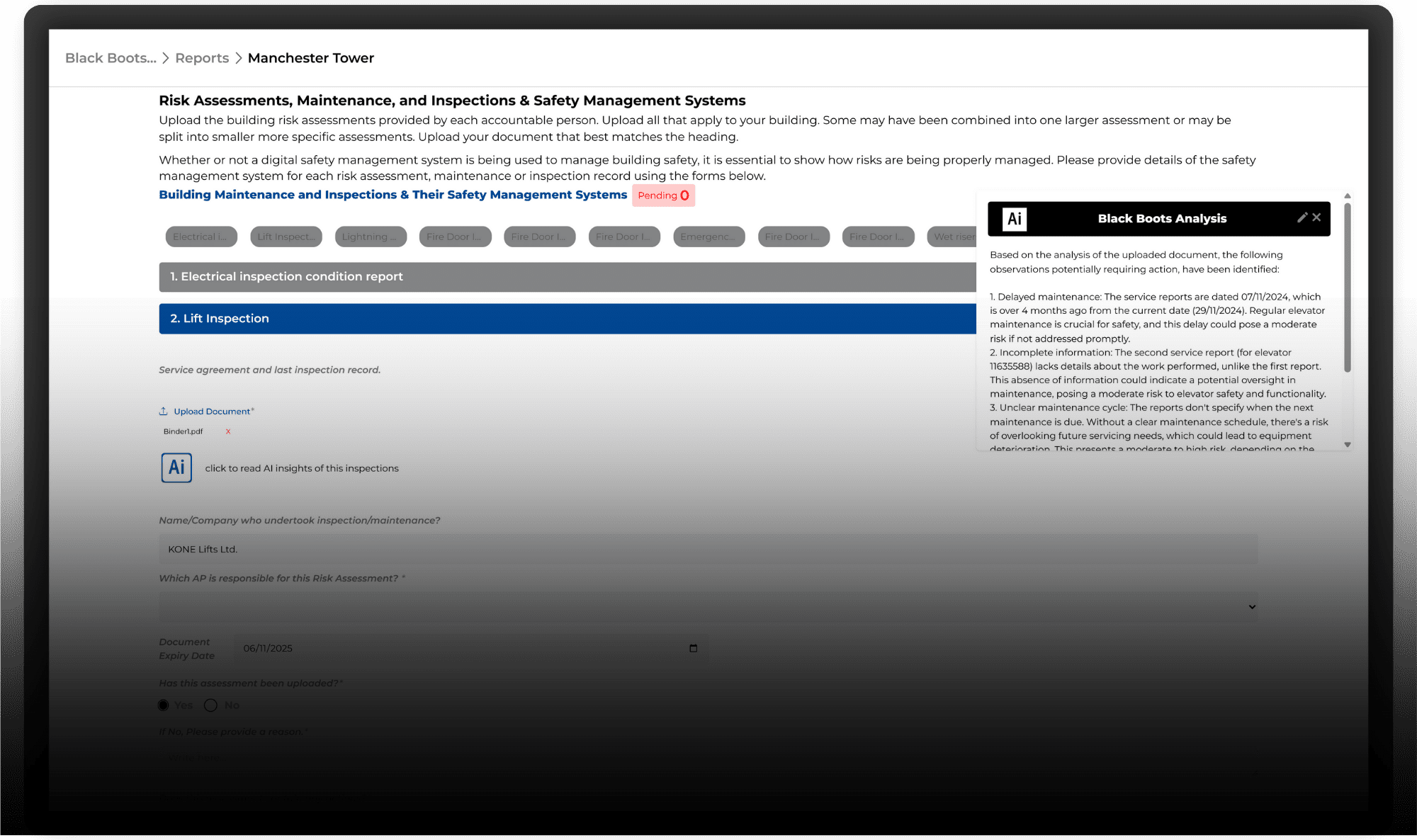BB-SCR’s intelligence is powered by an extensive knowledge base containing all relevant building safety legislation and guidance, the Building Safety Regulator’s assessment criteria, and comprehensive compliance frameworks. This ensures every report is aligned with current regulatory requirements.